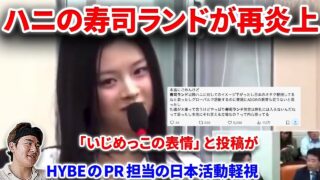 ニュース ハニの”寿司ランド”投稿”がネットで再炎上の理由!!HYBEのPRが日本活動を軽視したのか!?国会で証言するハニの表情が日本と海外では ミンヒジン【ニュジ BTS ILLIT Newjeans 炎上】